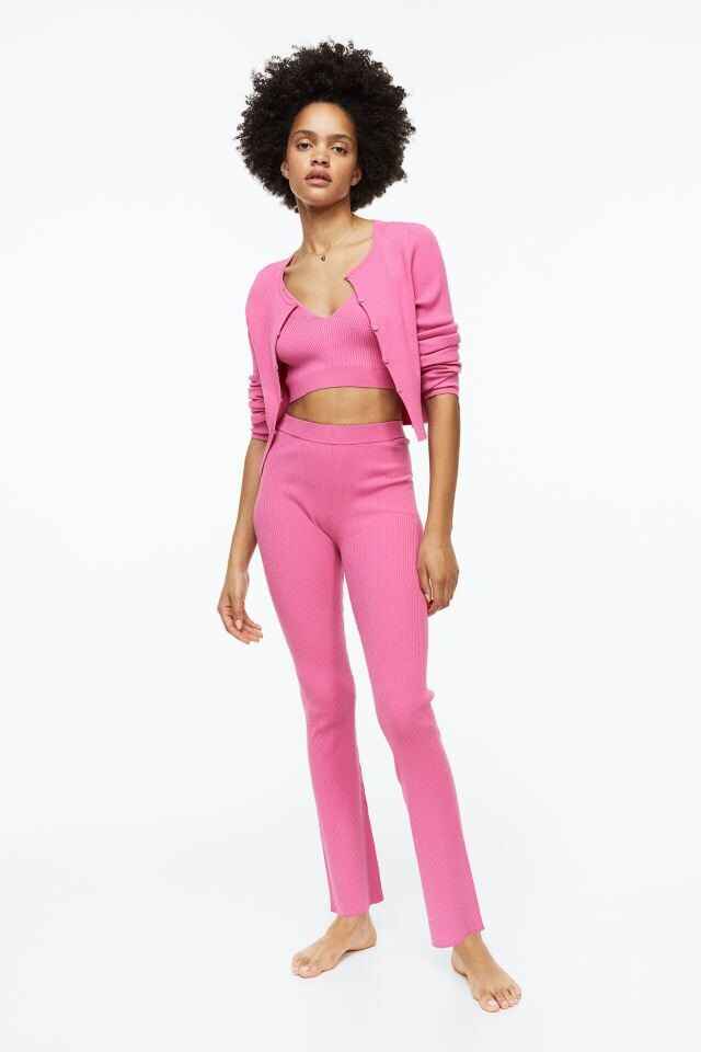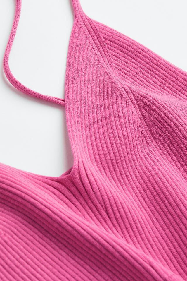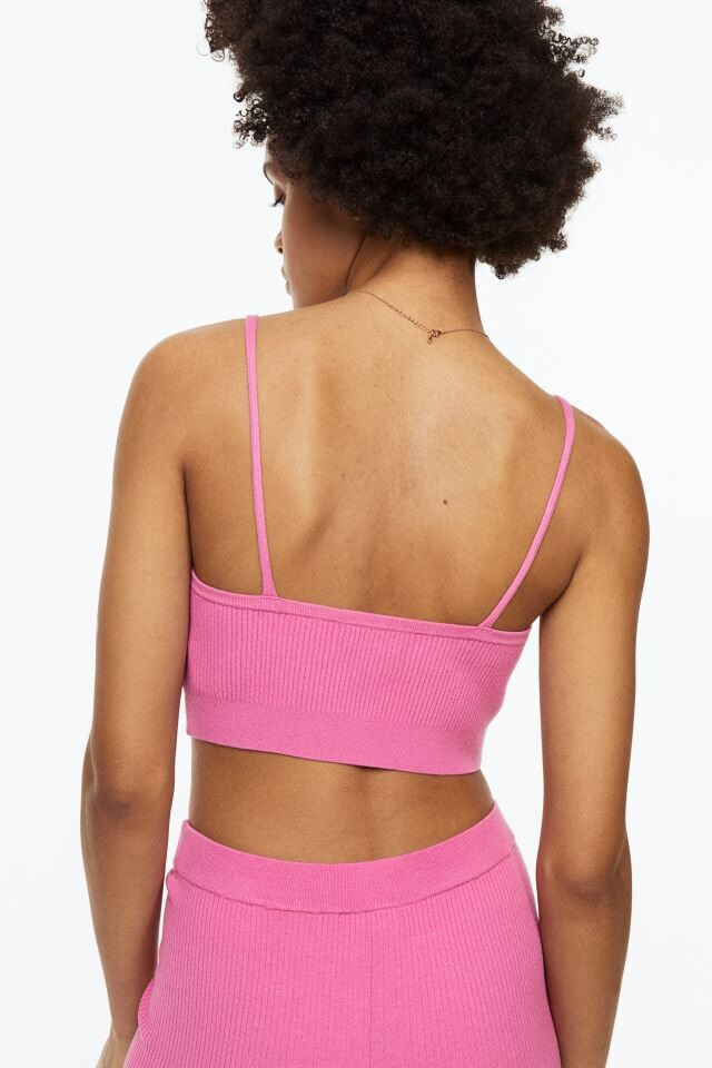 Fitted crop top in a fine-knit, ribbed viscose blend. Narrow shoulder straps and ribbed hem.
