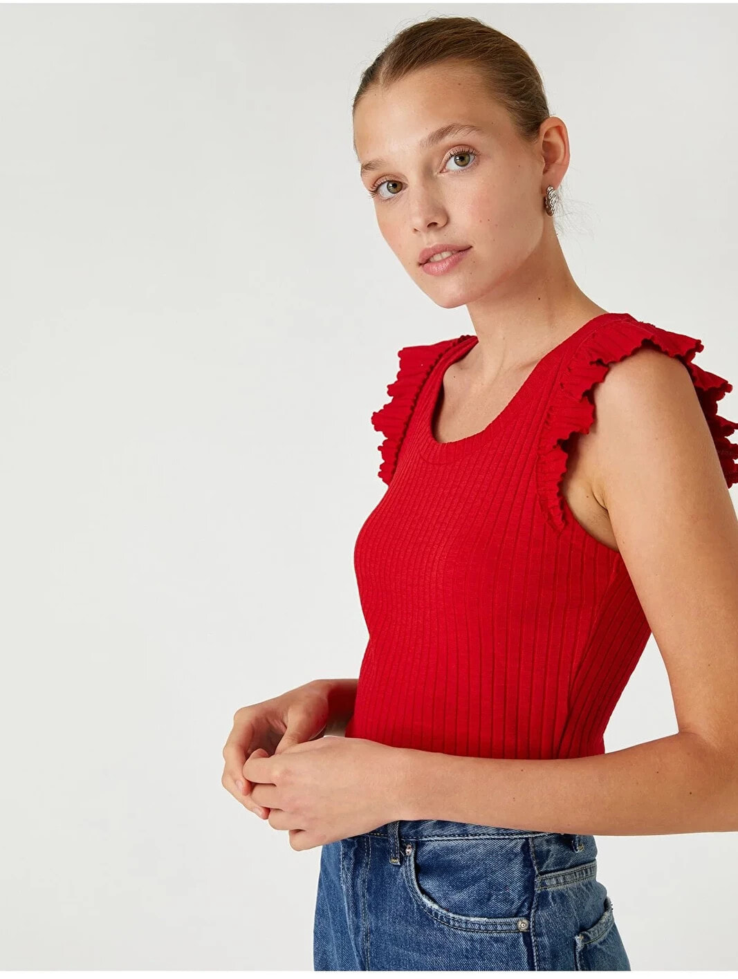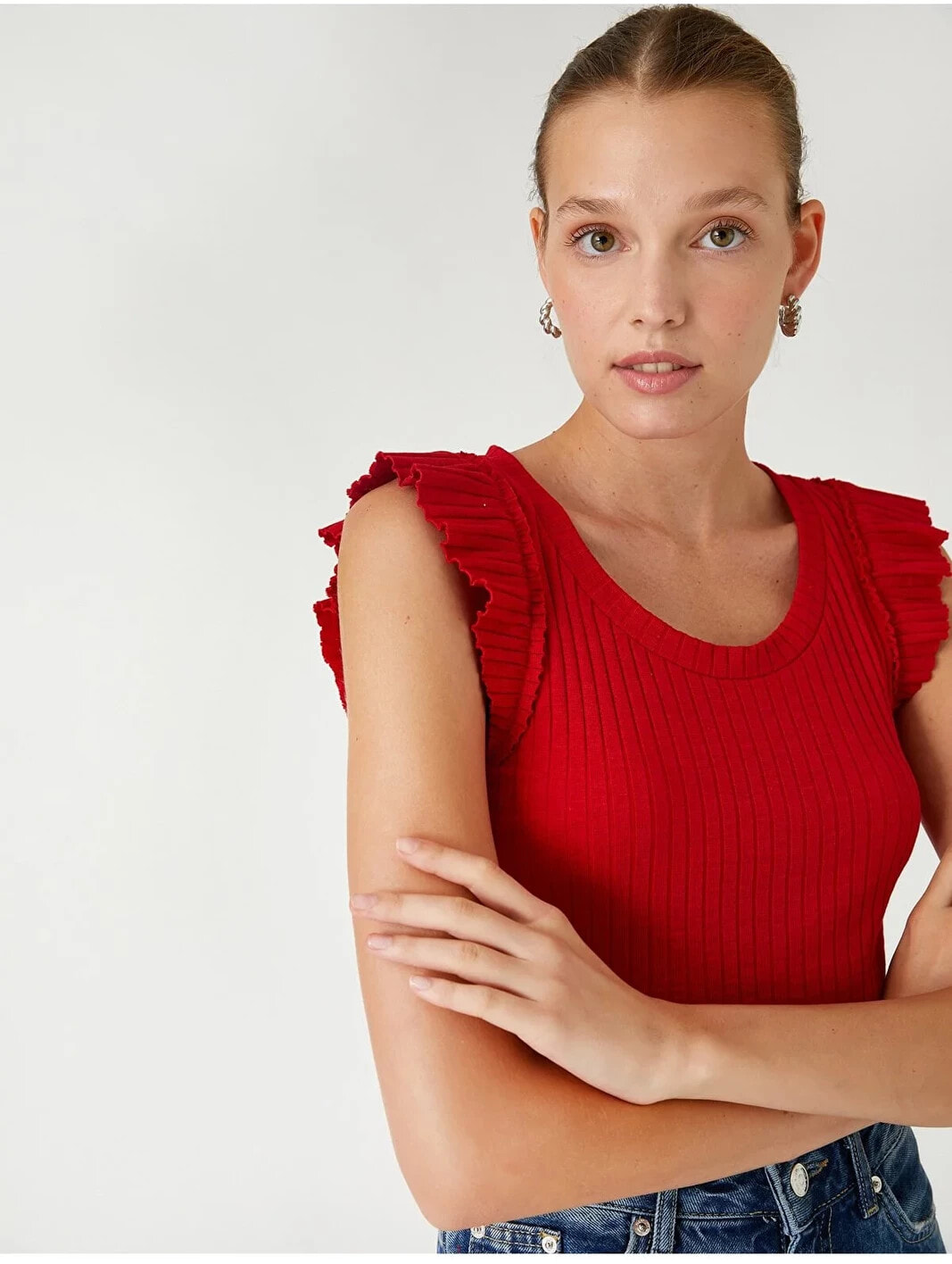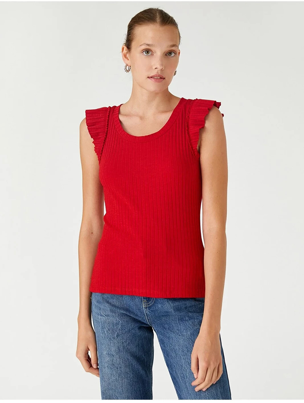 Ribanalı, yuvarlak yaka, volanlı atlet.