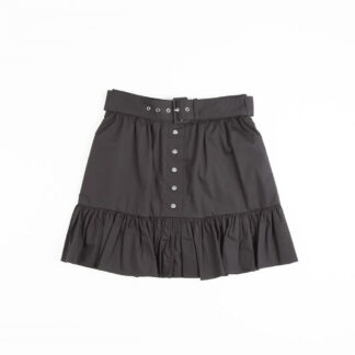 High-waisted shorts in white cotton lace. It features concealed front closure, belt loops and scalloped hems.