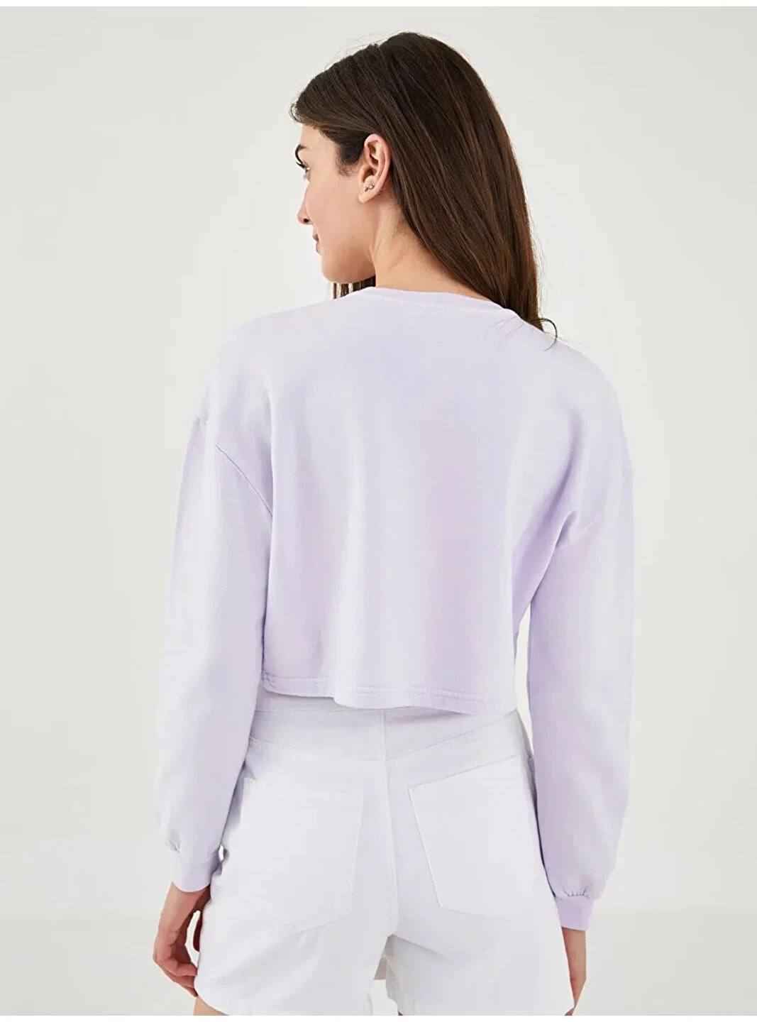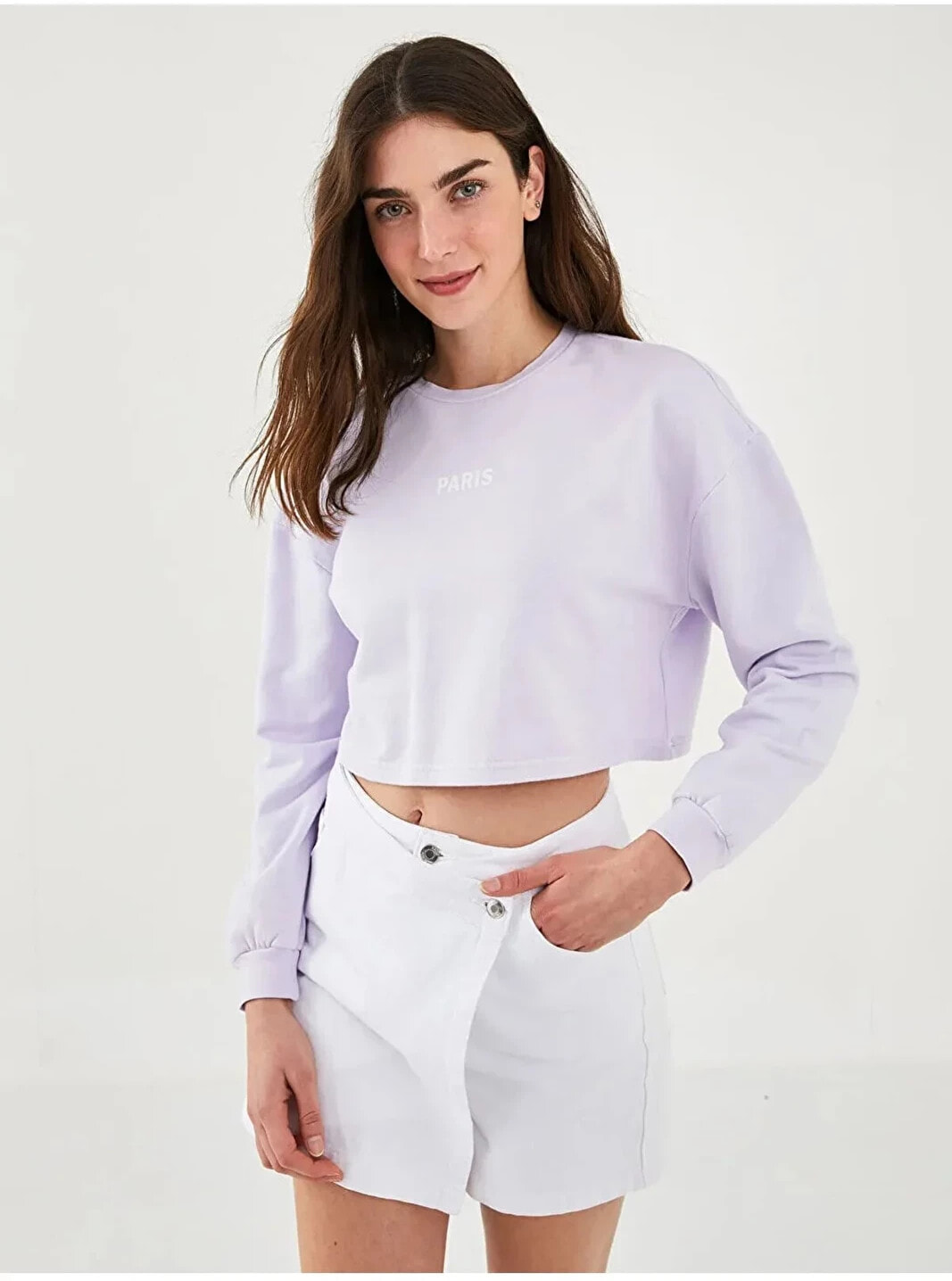 Xsıde Bisiklet Yaka Baskılı Uzun Kollu Pamuklu Kadın Sweatshirt