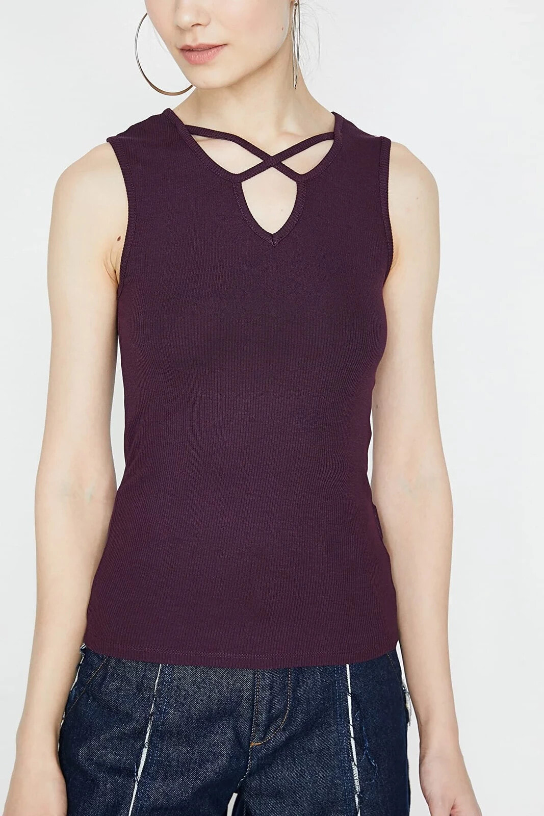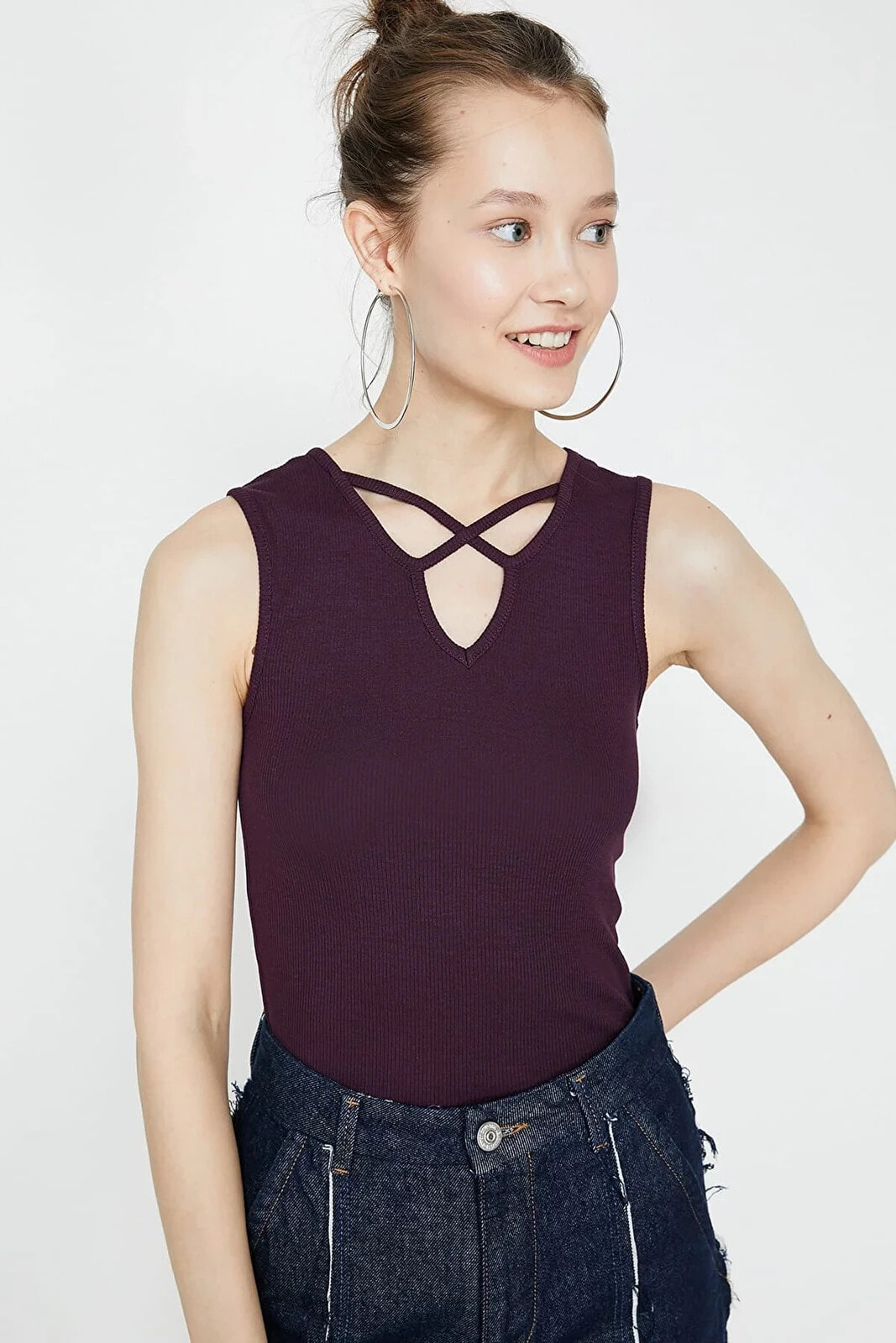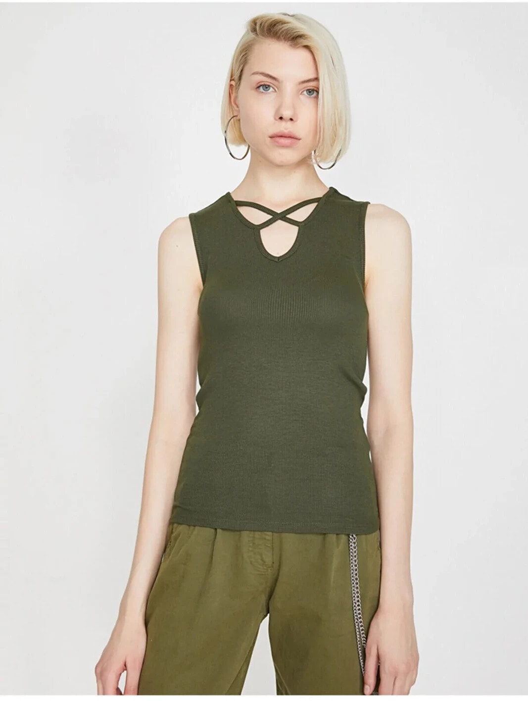 Ole by Koton – Genç Kız Koleksiyonu | Kolsuz, Yaka Detaylı Atlet Model Bilgileri: Boy:179 cm, G??????s:85, Bel:62, Kal??a:90, Modelin Bedeni:S