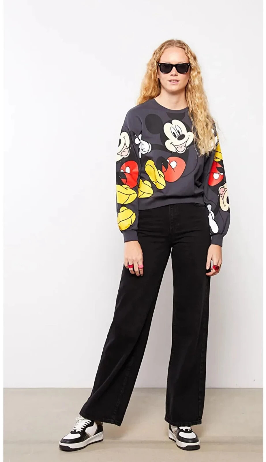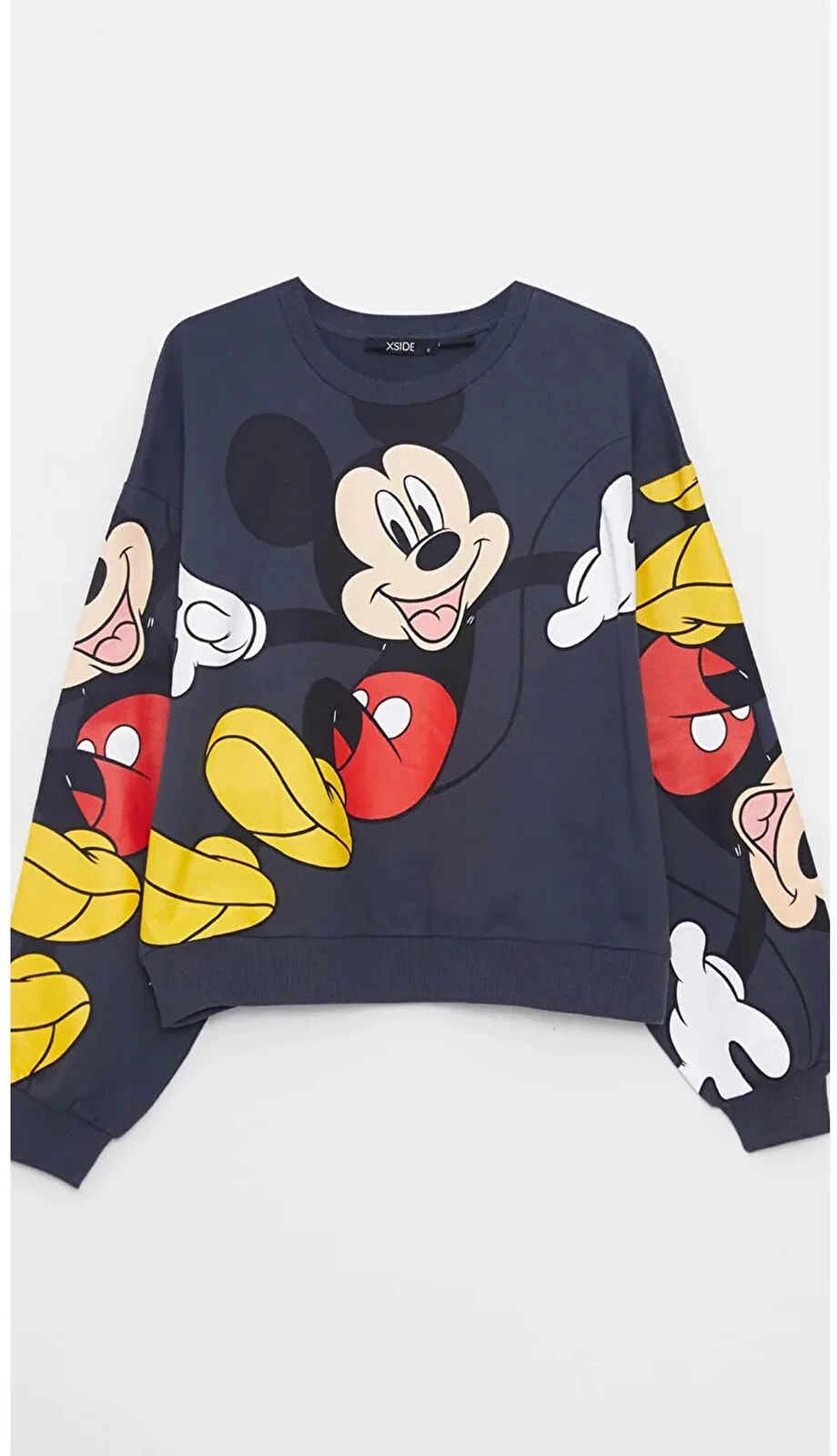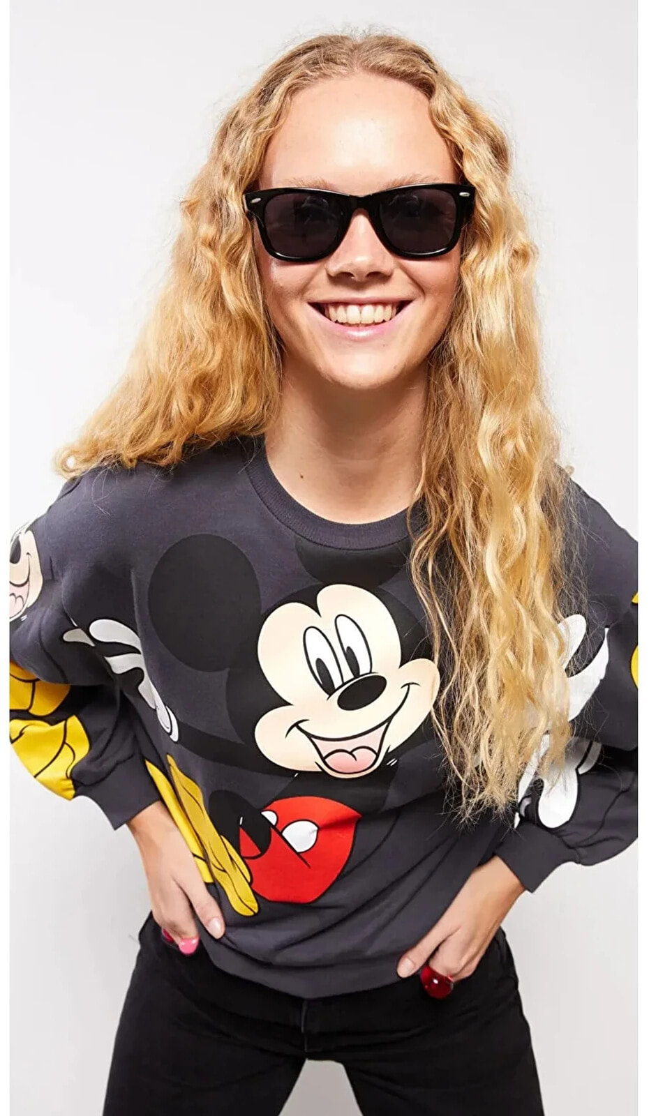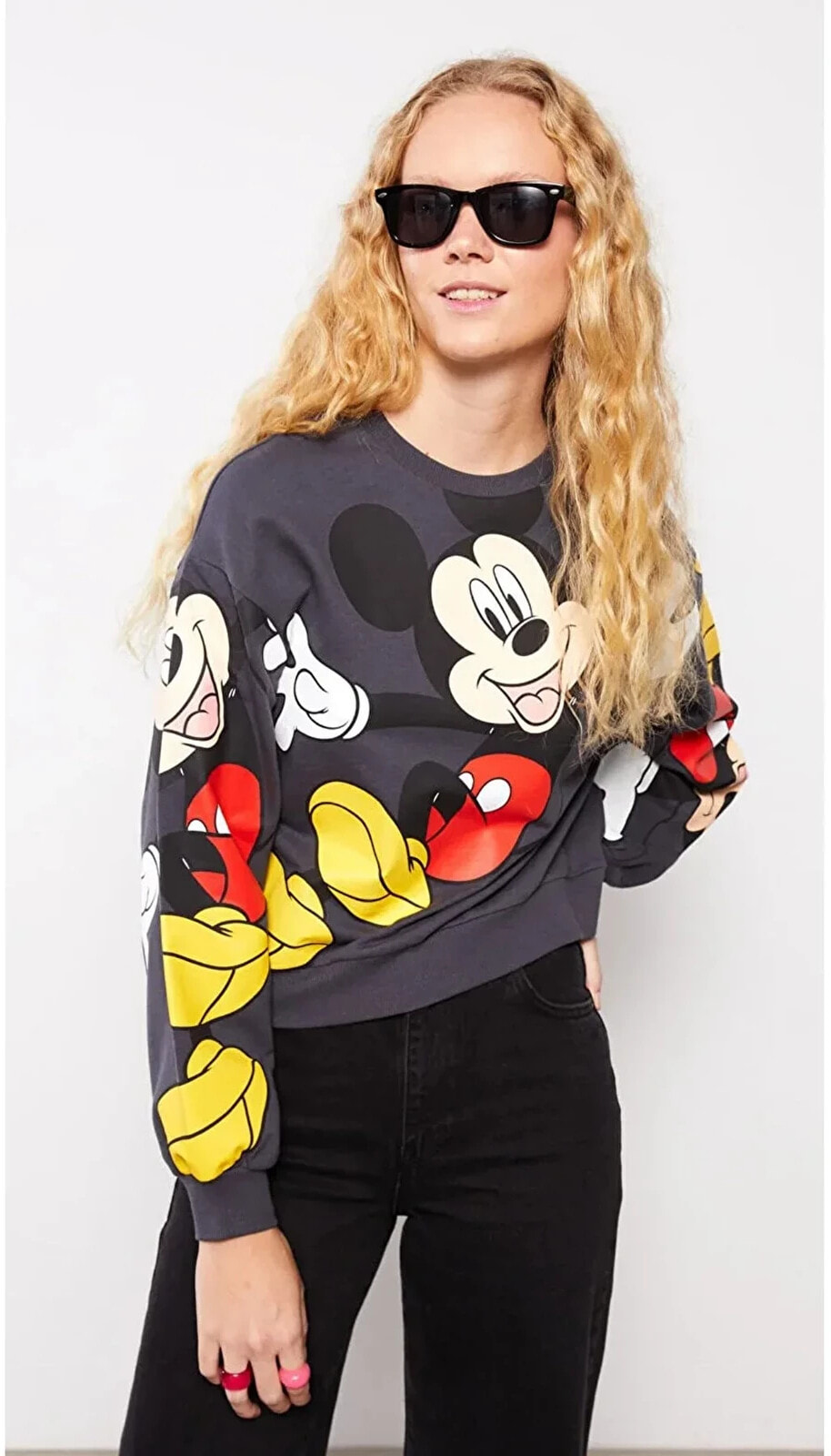 Ürün Tip: Yaka Mickey Mouse Baskılı Uzun Kollu Pamuklu Kadın Sweatshirt