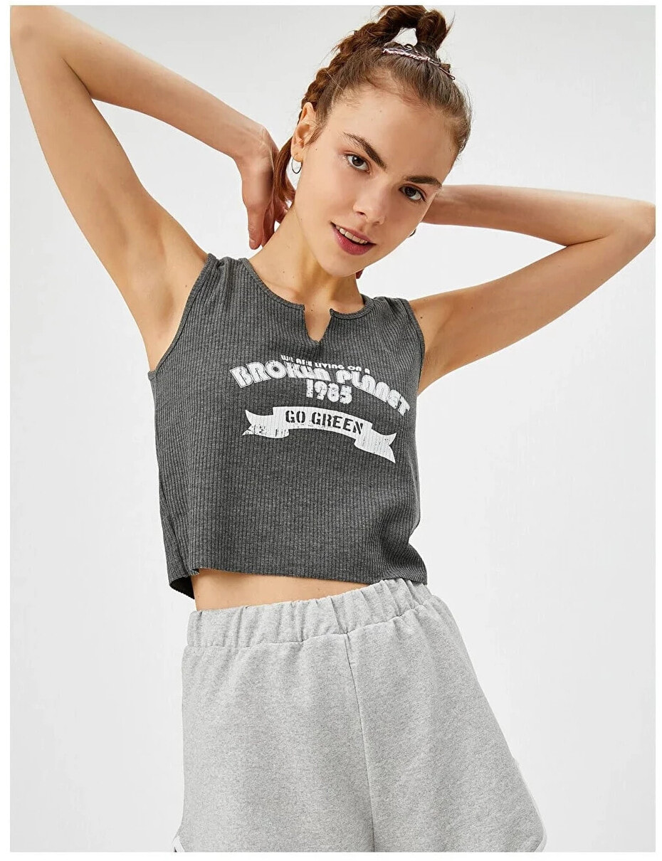 Ole by Koton – Genç Kız Koleksiyonu | Yazılı Baskılı Atlet Model Bilgileri: Boy:177 cm, G??????s:80, Bel:56, Kal??a:87, Modelin Bedeni:S
