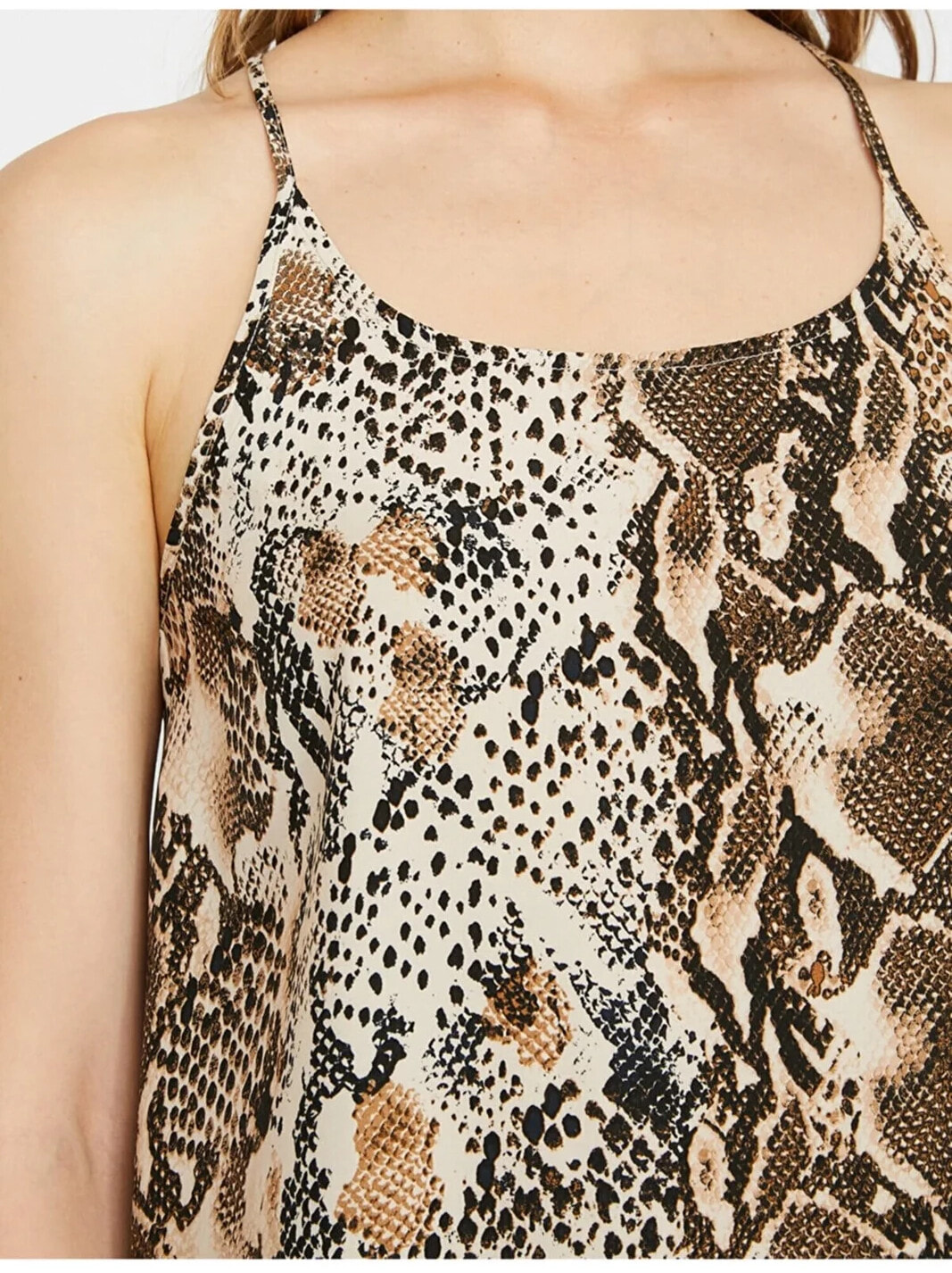 Oyuk Yaka, Yılan Derisi Desenli Atlet Model Bilgileri: Boy:177 cm, G??????s:82, Bel:61, Kal??a:88, Modelin Bedeni:S