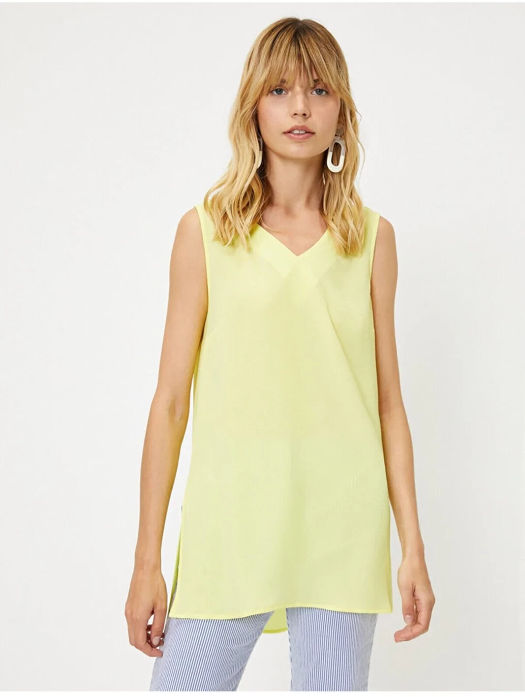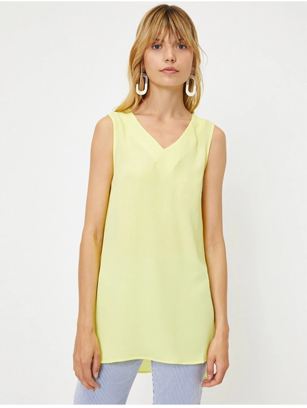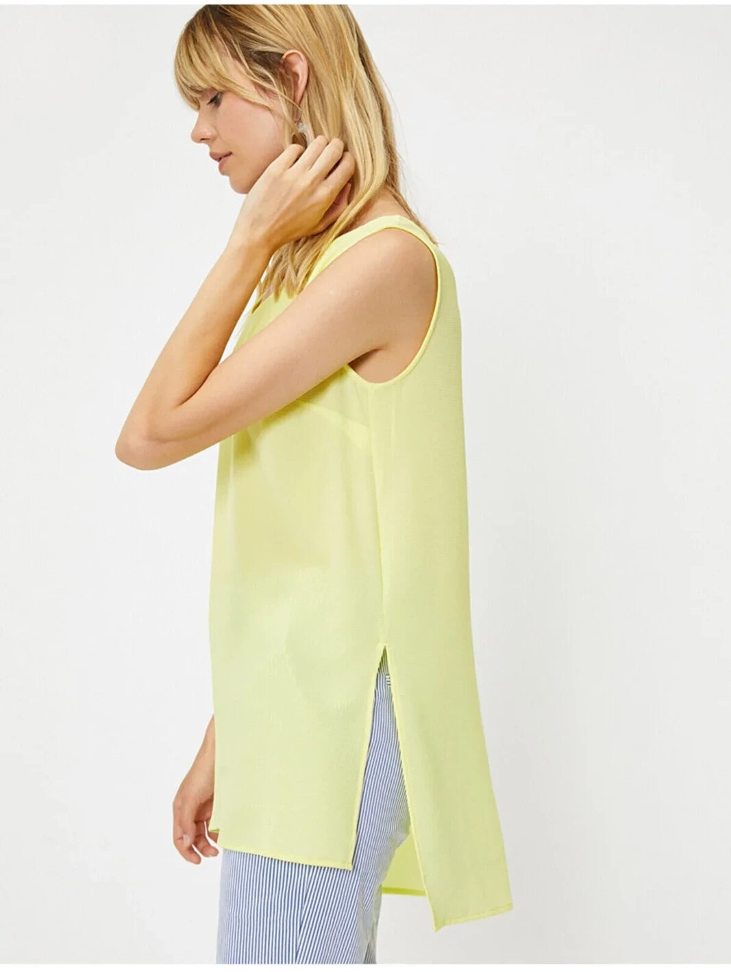 Bisiklet Yaka, Kolsuz Bluz Model Bilgileri: Boy:178 cm, G??????s:82, Bel:59, Kal??a:97, Modelin Bedeni:S