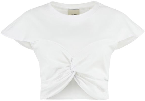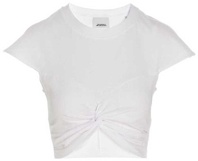 Zineae’ cotton, crewneck, short-sleeved t-shirt with front knot detail and a cropped style.